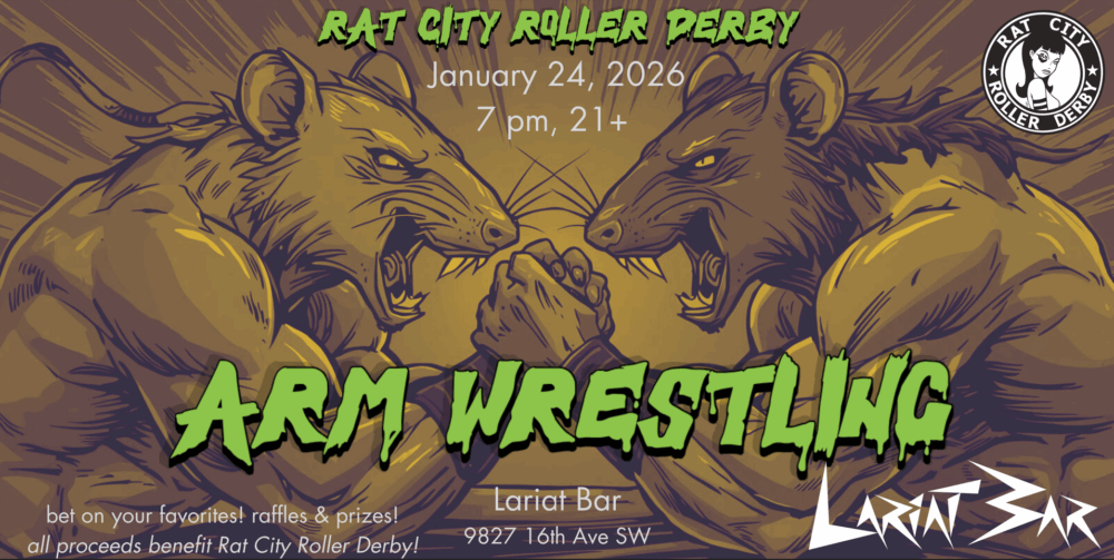 Upcoming Events BUY YOUR 2026 HOME TEAM SEASON PASS HERE January 24 Fundraiser | Rat City Roller Derby Arm Wrestling Four contestants. One champion. Zero room for hesitation. So grab your limited presale tickets NOW - and we will see you ringside! View all Events Blog 10/21/2024 Rat City Roller Derby's Pinkies Learn-to-Skate Program is back! 05/8/2024 Help the Rat City All Stars go to WFTDA Regional Championships! 02/11/2024 Celebrating 20 years of Rat City with a special anniversary logo View all Posts Thanks to our sponsors!